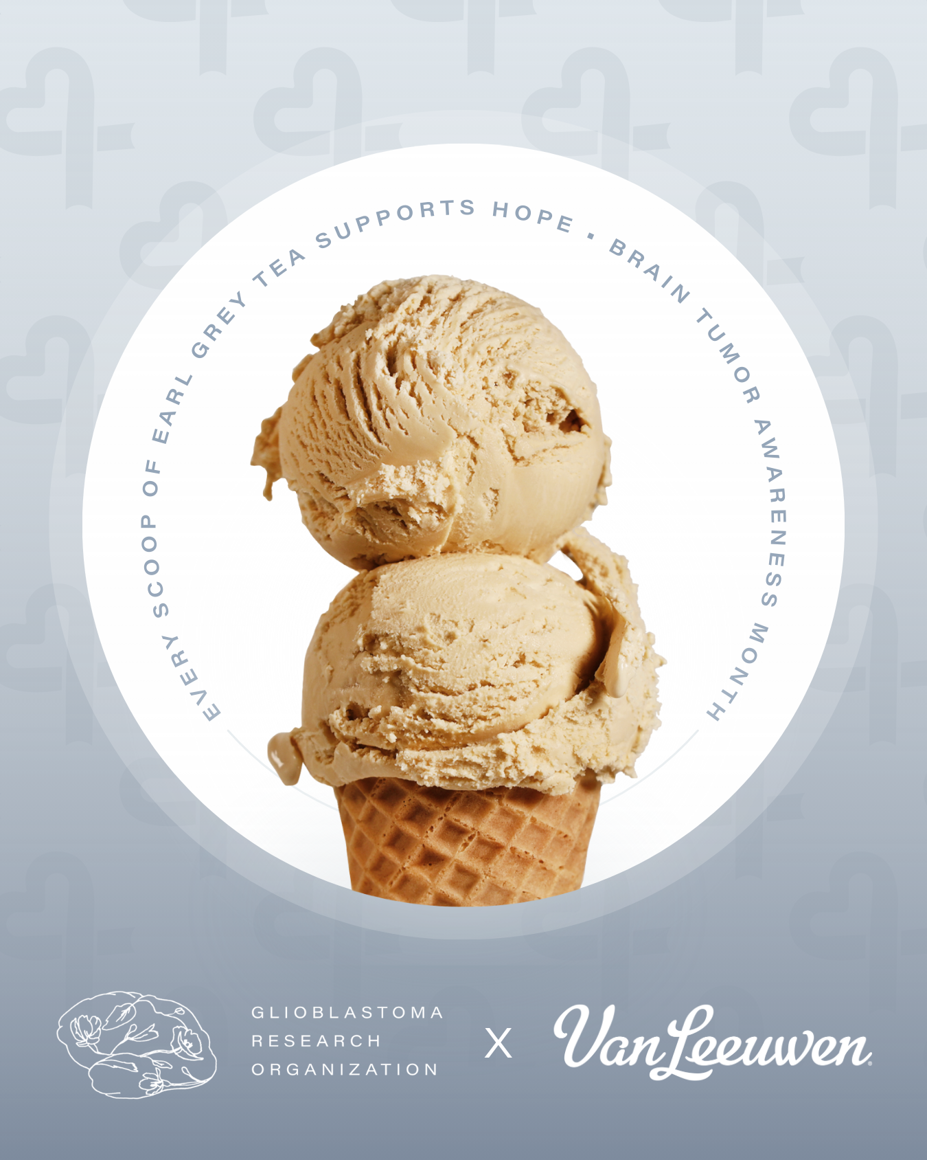 We’re proud to announce our partnership with Van Leeuwen Ice Cream in honor of Brain Tumor Awareness Month. For every scoop of their Earl Grey Tea ice cream sold in scoop shops this month, a portion of profit will benefit the Glioblastoma Research Organization and support life-saving research.
